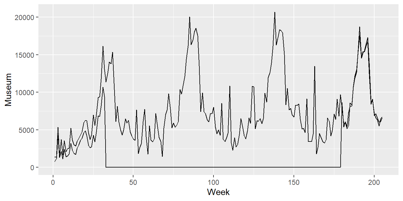 # Vi lager et nytt datasett bestående av de ukene der museet var stengt: