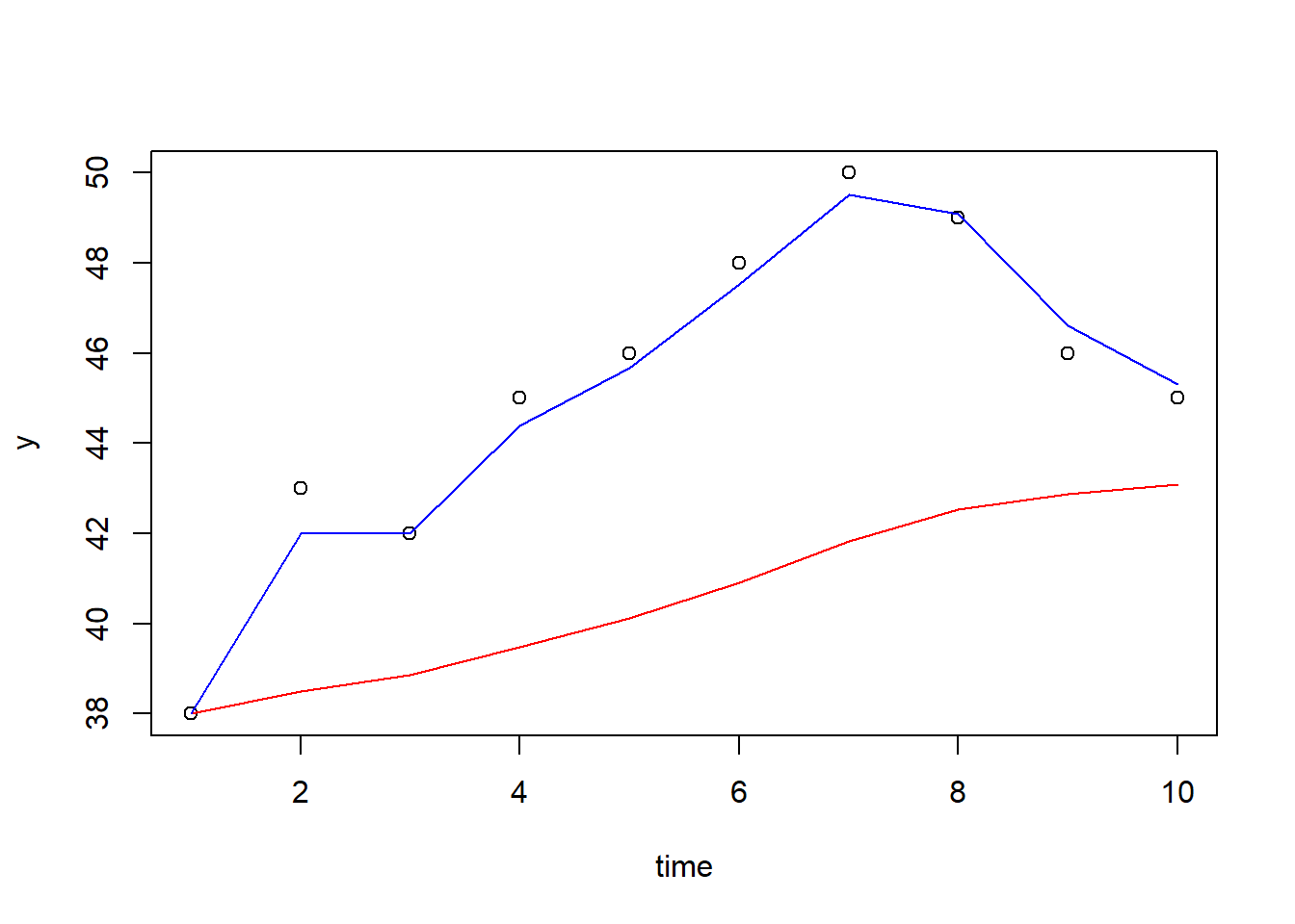 y <- c(38, 43, 42, 45, 46, 48, 50, 49, 46, 45)